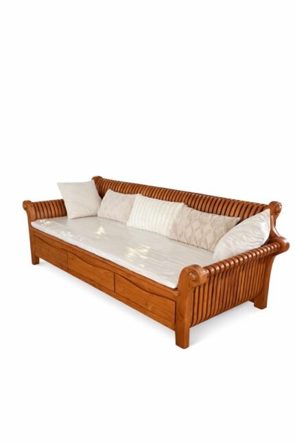 โซฟาไม้สักล้วน 3 ลิ้นชักพร้อมเบาะหนา 1.5 cm.