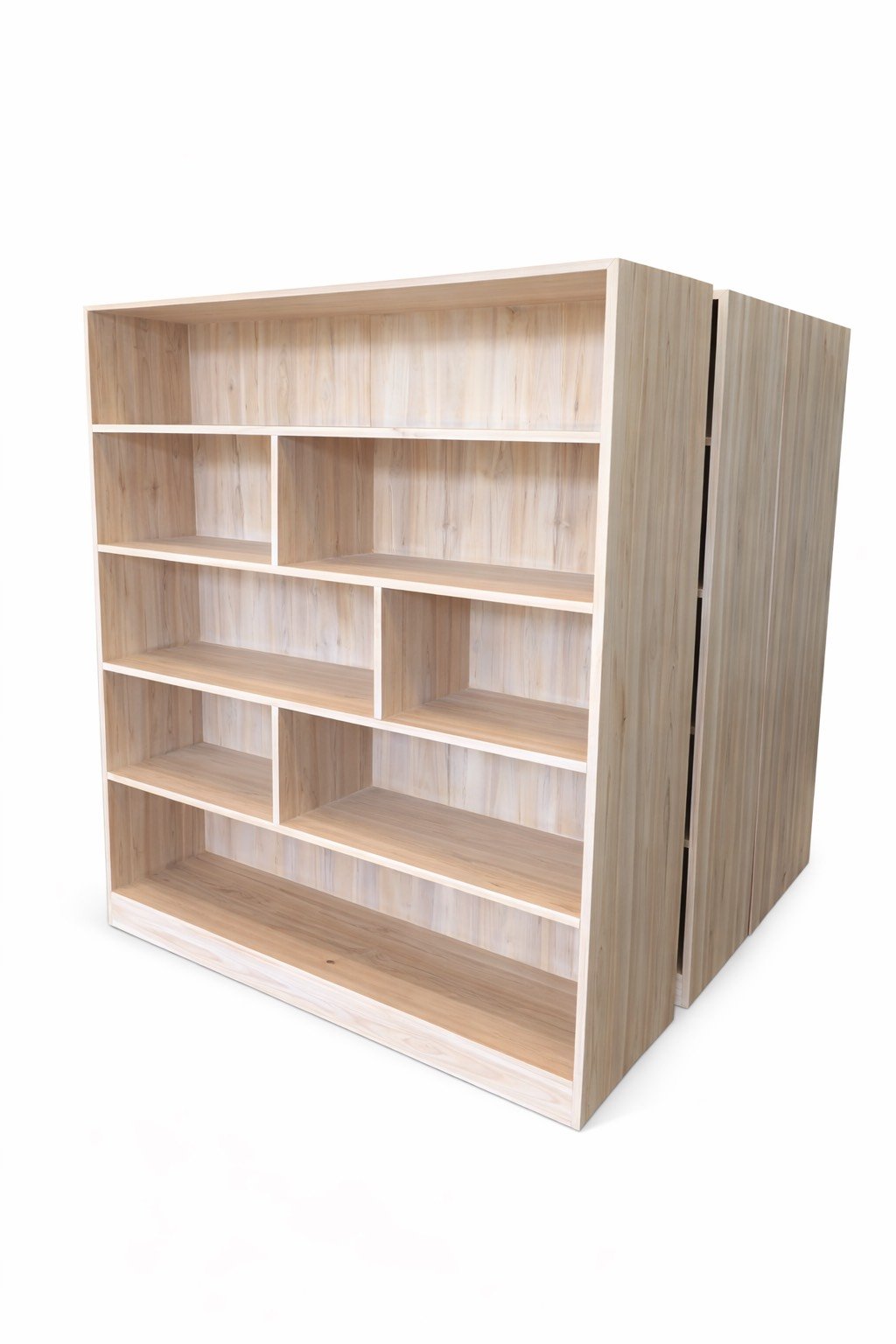 ชั้นหนังสือไม้สักล้วน 8 ชั้น ทำสีเสี้ยนขาว
