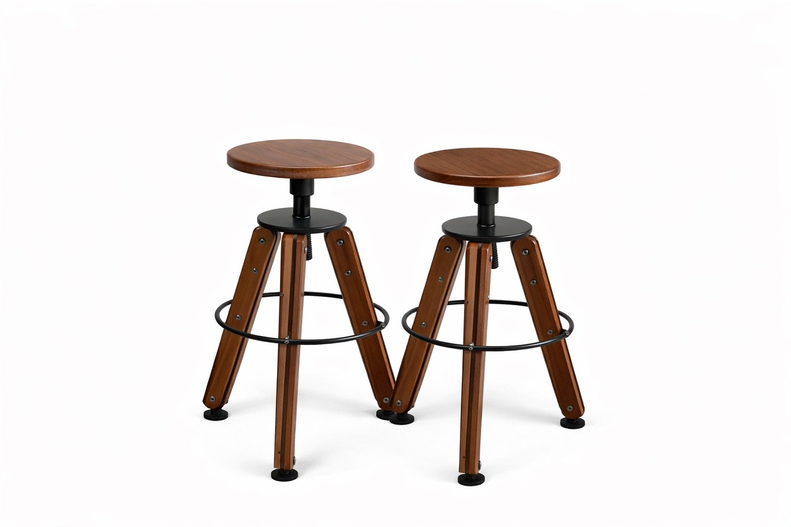 เก้าอี้บาร์วงกลมไม้สัก คาดด้วยเหล็กสีดำ ความสูงสามารถหมุนปรับได้