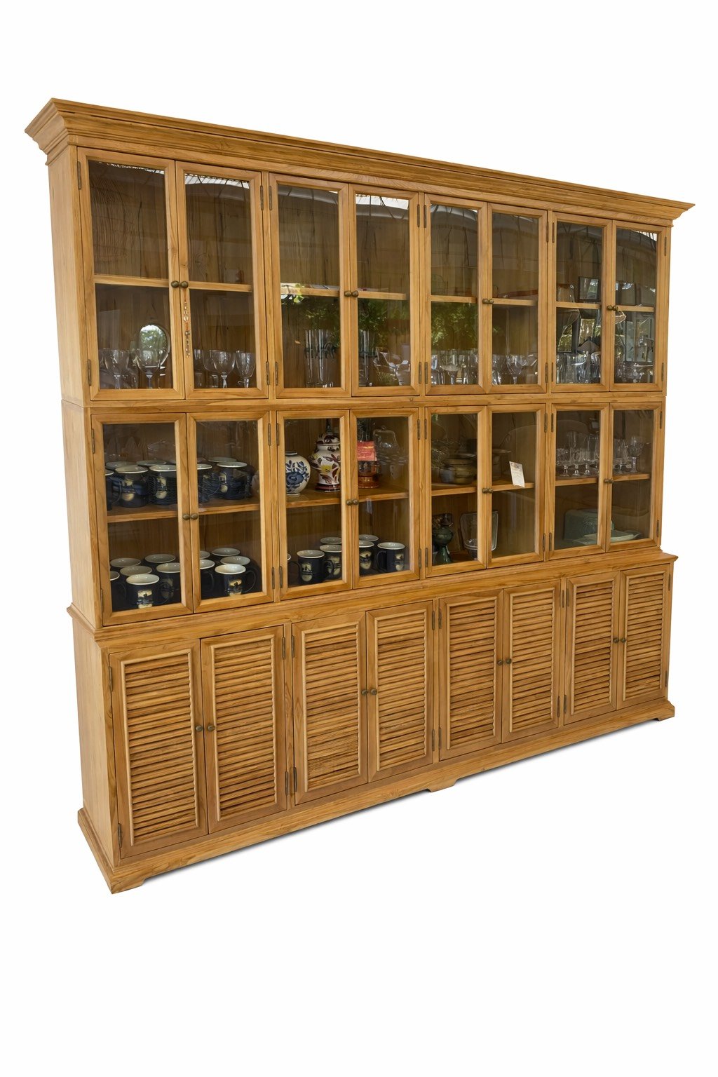 ตู้โชว์ 3 ท่อนไม้สักล้วน 16 บานกระจก 8 บานเกล็ด